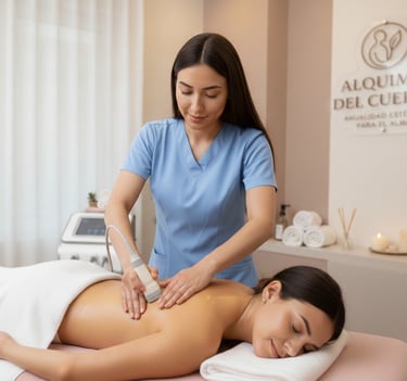 Terapia de ultrasonido y vibración profunda que estimula la regeneración celular, disuelve tensiones y armoniza el campo energético, llevando al cuerpo a un estado de integración, equilibrio y renovación.