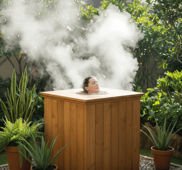 Terapia de vapor frío y luz cromática que regenera la piel, armoniza el campo energético y despierta la belleza celular desde lo sutil.