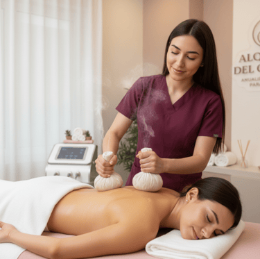Masaje que combina el poder de las plantas y el vapor para desintoxicar, suavizar tejidos y armonizar el cuerpo. Ideal para armonizar cuerpo y mente, aliviar dolores corporales y reconectar con la medicina de la tierra.